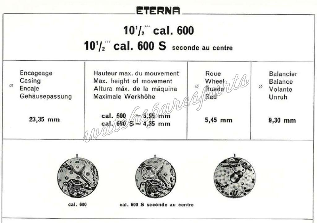 The Eterna calibre 600S is a compact mid-century manual-wind movement that nicely bridges robust tool-watch reliability with the early elegance of Eterna’s wristwatch era for collectors and hobbyist watchmakers. It rewards careful servicing and offers an accessible platform for learning traditional Swiss movement architecture.