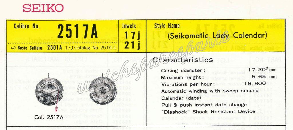 Seiko 2517A Watch spare parts