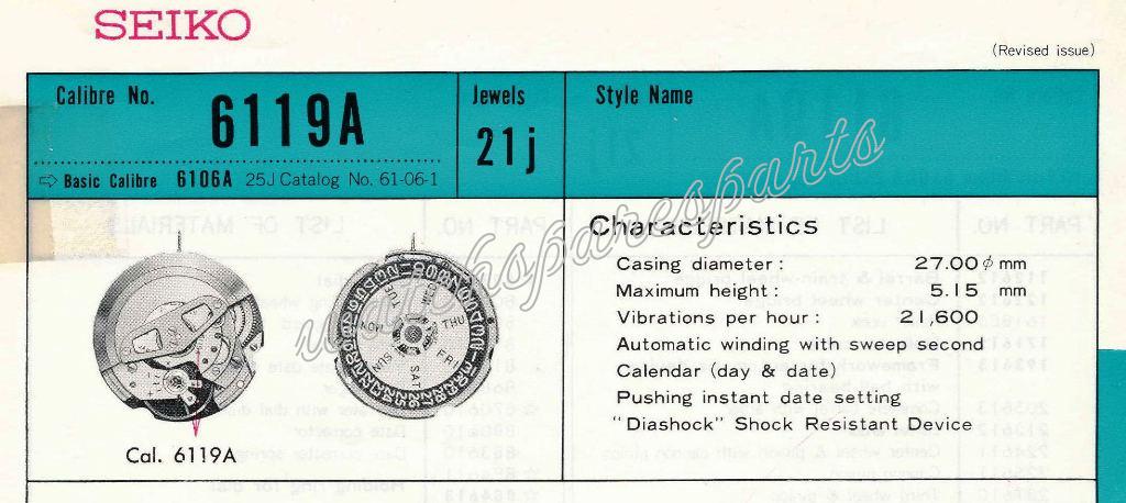 Seiko 6119A Watch spare parts